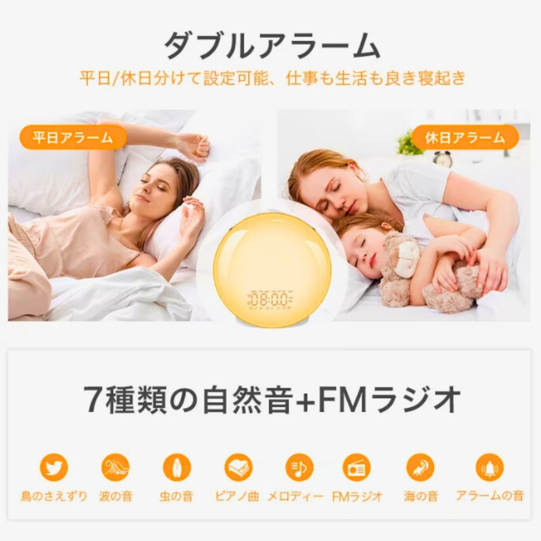 - 🐦 小鳥のさえずりで気持ちよく起きられる